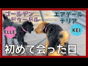 ゴールデンドゥードル・エルとエアデールテリア・ケイがドキドキの初対面