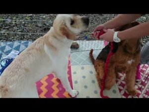 【犬連れバーベキュー】ラブラドールレトリーバー、エアデールテリア、あっちの方にゴールデンレトリーバー