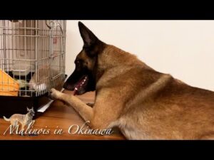 ウサギの食べ物を狙う大型犬ベルジアンシェパード・マリノアの可愛い仕草!