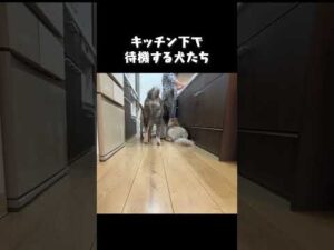 キッチン下で待機する犬たち【チャウチャウ】【秋田犬】【ラブラドールレトリバー】【多頭飼い】【大型犬】#Shorts