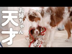 自分でお布団をかける賢すぎる姉犬を見て何度も驚く弟犬が可愛い(笑)【ボーダーコリー・オーストラリアンシェパード】