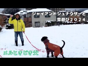 ジャイアントシュナウザーと雪遊び|Playing in the snow with a Giant Schnauzer, winter in Japan