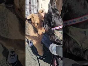 積極的なエアデールテリアのスーちゃんからラブビームを浴びたダンテくん♥️