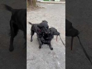 戦う親子‼️#flatcoatedretriever #フラットコーテッドレトリバー #戦う