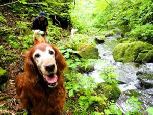 木陰の森の清流で一休み🐾 (Saluki・Irish Setter)