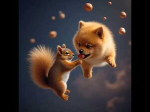 Chow chow puppy and squirrel eating a berry in outer space❤️鬆獅犬小狗和松鼠在外太空吃莓果 🪐#チャウチャウ#リス#cuteanimals