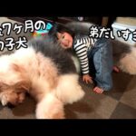 【もふッ♡】どれだけデッカくなっても弟が大好きでずっとハグをしちゃう1歳児が可愛すぎました…!|グレートピレニーズ&オールドイングリッシュシープドッグ&グレートピレニーズ