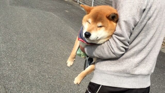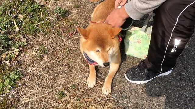 【イッヌ】帰宅拒否->うっかり居眠り!強制的に連れ帰られる柴犬がいとおしい