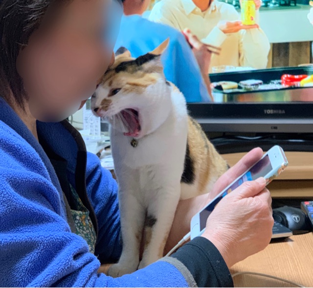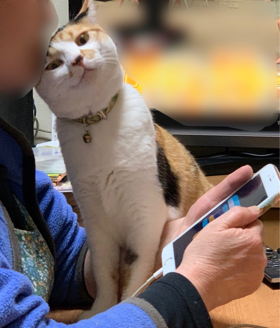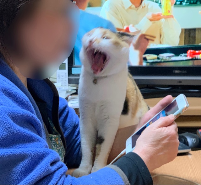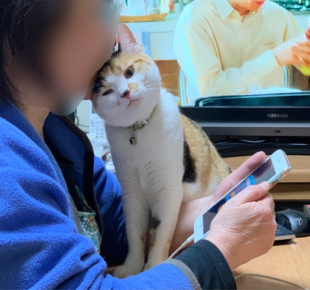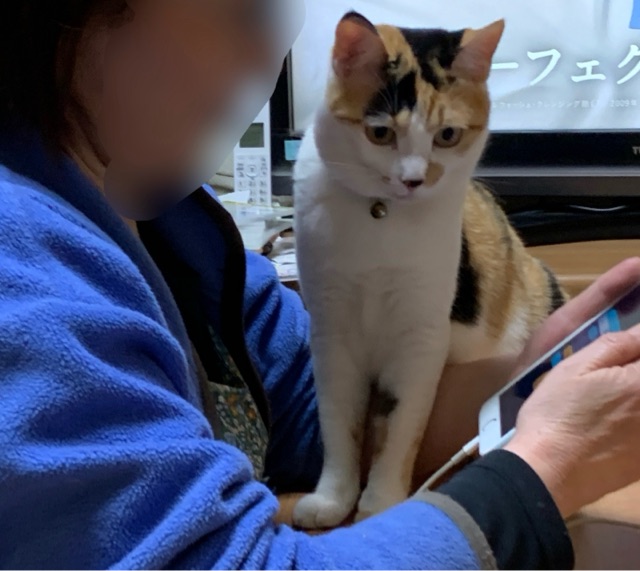 スマホゲームに夢中な母にめりこむ宇宙猫