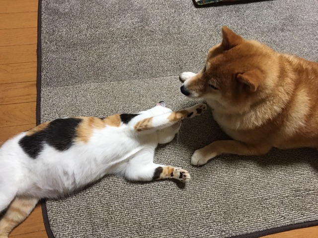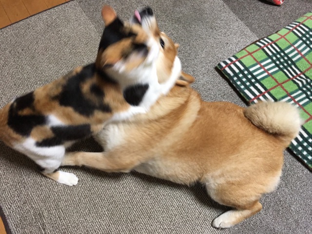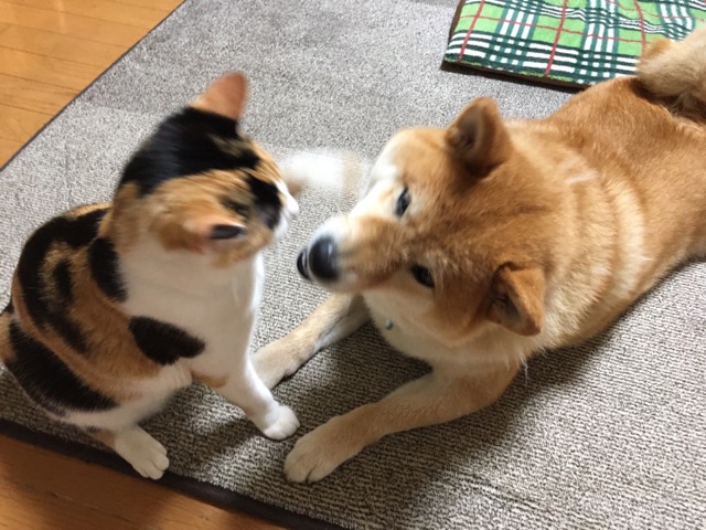 柴犬と三毛猫が毎朝顔を合わせたらやる儀式