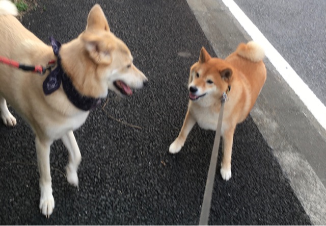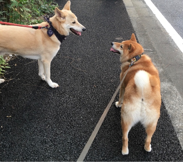 久しぶりの犬たちと再会してニコニコになる柴犬