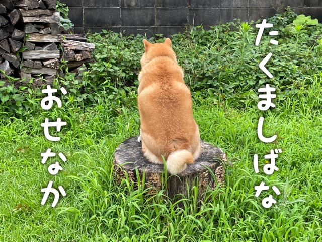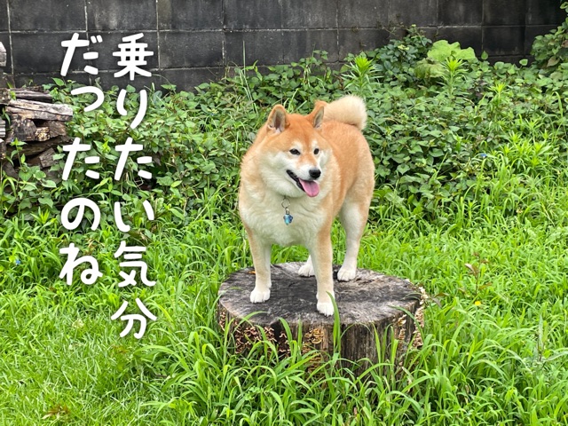 切り株柴犬さんだ。