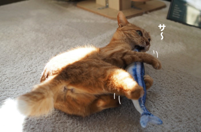 サンマの蹴りぐるみで遊ぶまる子をご紹介。