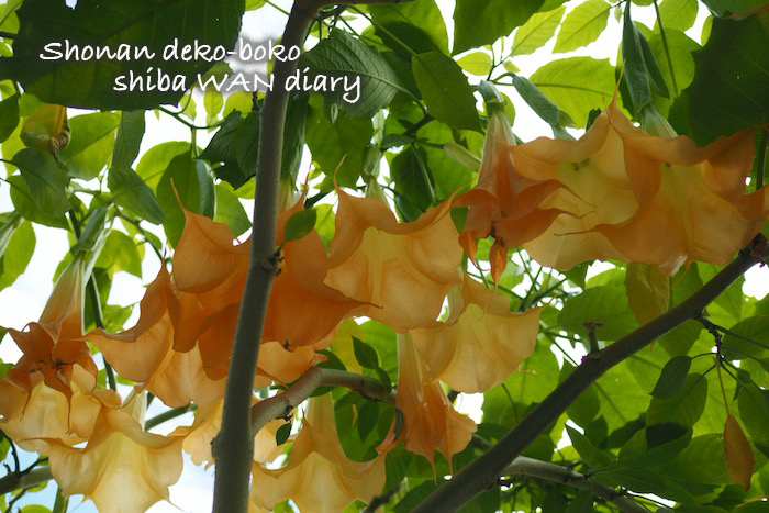 10月中旬から咲き始めた母屋のエンゼルトランペット。
