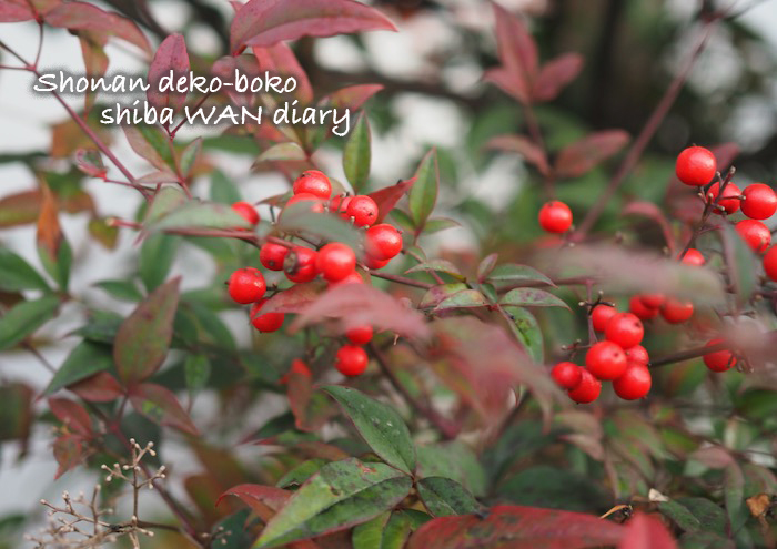 南天の実が赤く色づいていました。