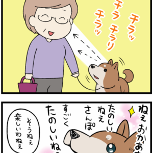 イヌまとめ ニコニコ笑顔を向けてほしくて、散歩中の柴犬に声をかけたところ… shibainu donguri / 2021年11月8日 前回のつづき めちゃくちゃに可愛い仕草の犬を見て… どんぐりにもつ… もっと読む