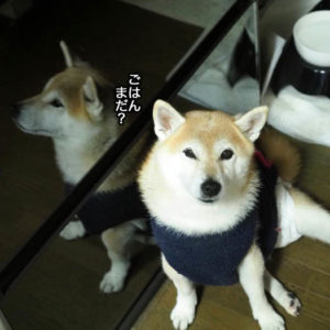 夕方の散歩を終えて、 ごはんを待っているあん。 寒い季節に洋服を着…