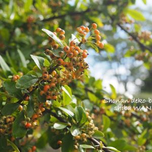 赤みを帯びてきたピラカンサの実(多分)。 今朝は、あんと、 少し足…