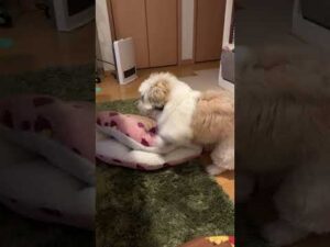穏やかな日常(?) #ぱっちとがんも #シーズー #ペキニーズ #ミックス犬 #フェレット #喧嘩 #mix #ferret #dog