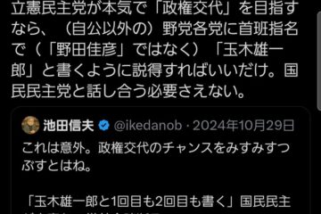国民民主議員さん「本気で政権交代する気なら首班指名は野田ではなく玉木と書け」