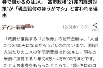 【悲報】おこめ券さん、5キロの米すら手に入らない欠陥券だったwww