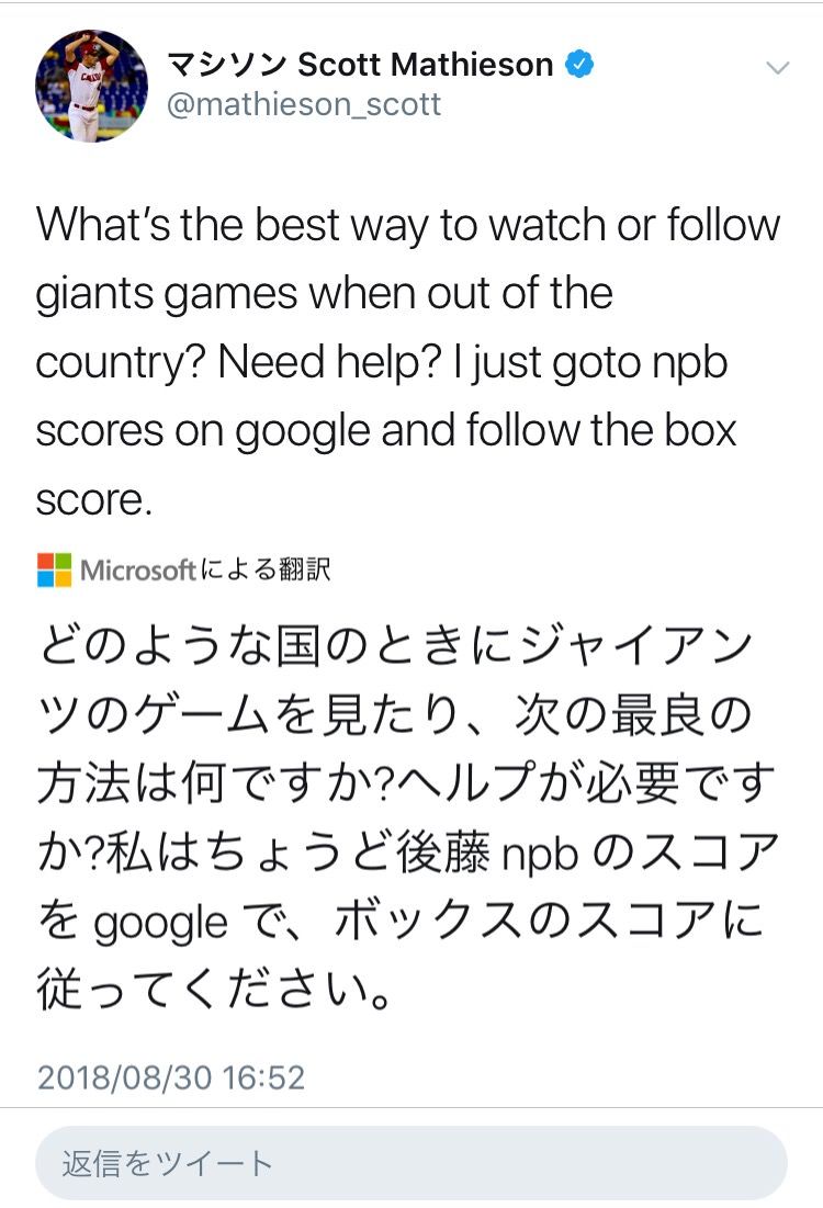 マシソンさん、日本にいなくても巨人の試合を観たがる