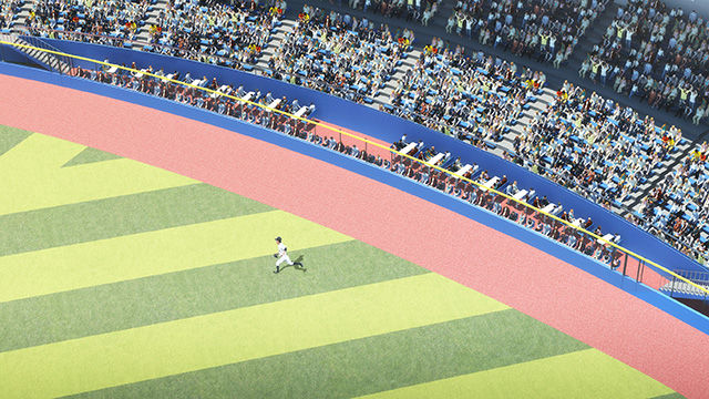 選手と同じグラウンドの高さに位置し、まるで外野手になったかのような雰囲気を持てる観客席となります。