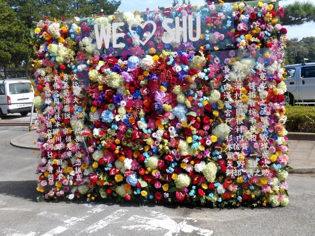 球場付近には、昨季までプレーした巨人の同僚から特大の“花看板”が届けられた。看板には「WE = SHU」(=はハート)と記され、巨人の阿部、菅野、坂本勇や杉内らの名前が記された。セレモニーでは巨人の元同僚や日本ハム・矢野や実松のメッセージも読まれた。