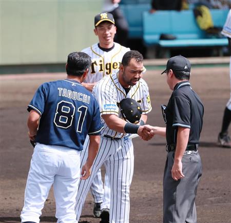 (ウエスタンリーグ、阪神4-1オリックス、11日、鳴尾浜)試合前のメンバー表交換時に、なぜかロサリオが登場。メンバー表を手に審判やオリックスの田口2軍監督と笑顔で握手をかわすと、遅れて登場した矢野2軍監督が苦笑いしながら止めに入ってスタンドの笑いを誘う一幕があった。まずはイタズラで沸かせると、「4番・一塁」で登場して二回先頭で左前打。本職のバットでも場内を沸かせた。