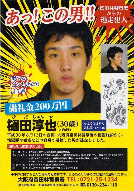 【画像】富田林の逃走容疑者、なぜか阪神タイガースっぽくされる