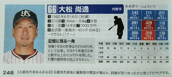 【悲報】2018年選手名鑑さん、高度な大松使いをする