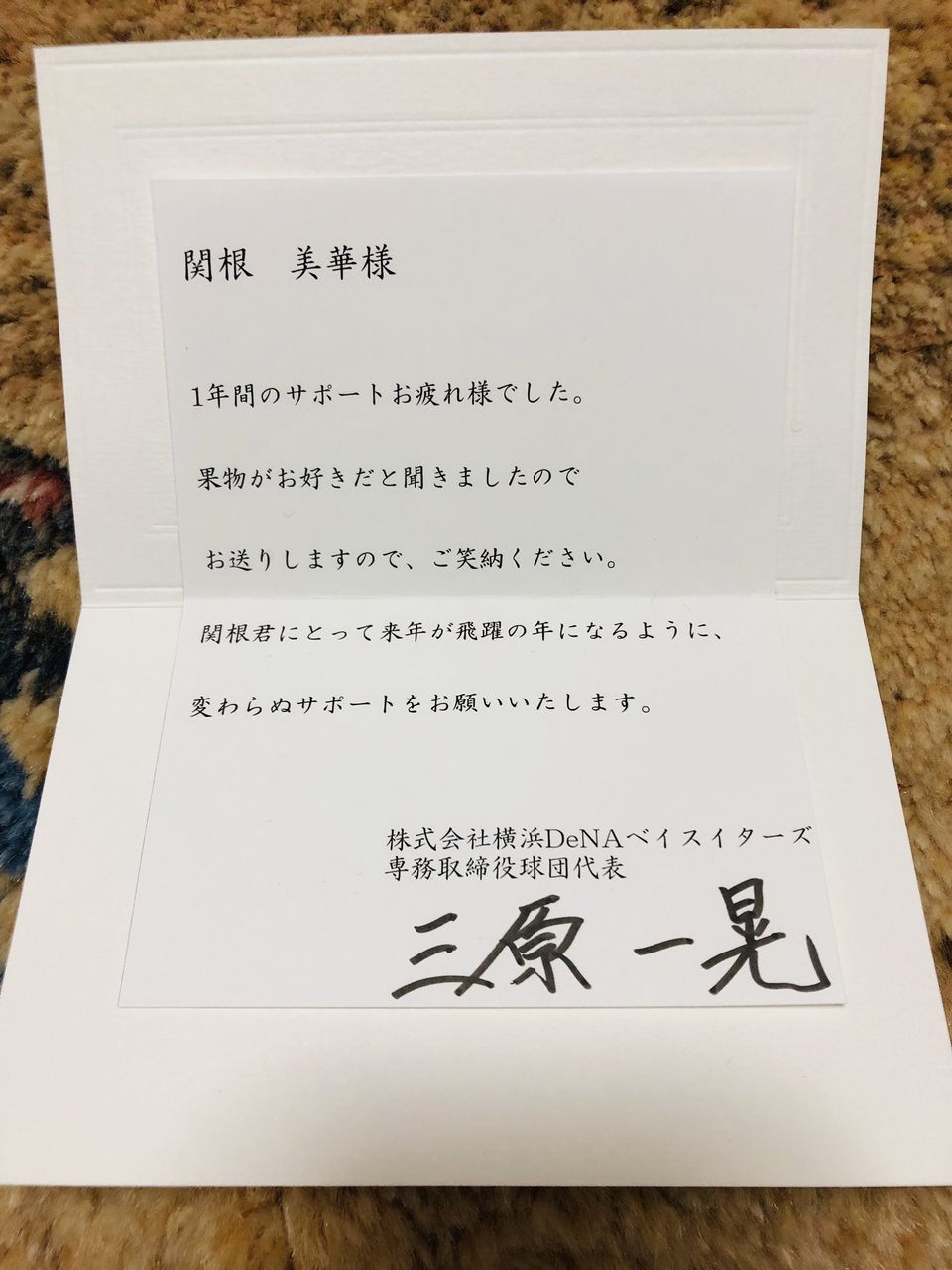 【悲報】DeNA関根の母、謎の球団から果物を貰う