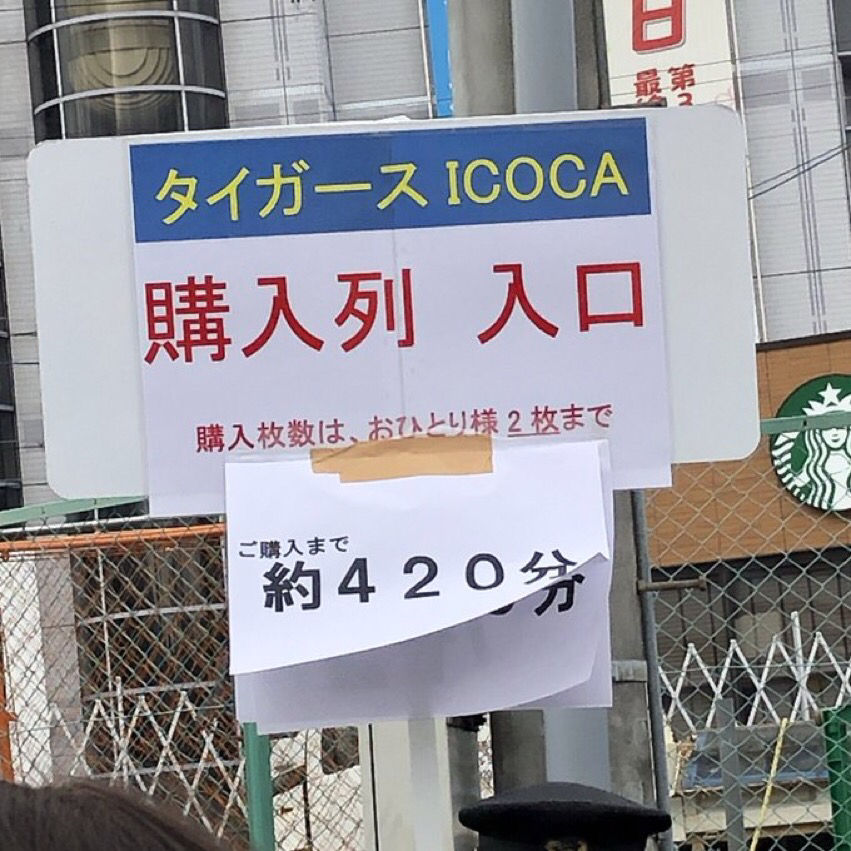 【悲報】限定デザイン「タイガースICOCA」の先行発売が420分待ちの行列