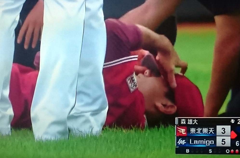 【速報】楽天・田中が右足首負傷 担架で運ばれる【GIF】