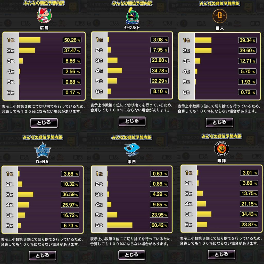 プロ野球ファン1600万人の順位予想がこちらwww