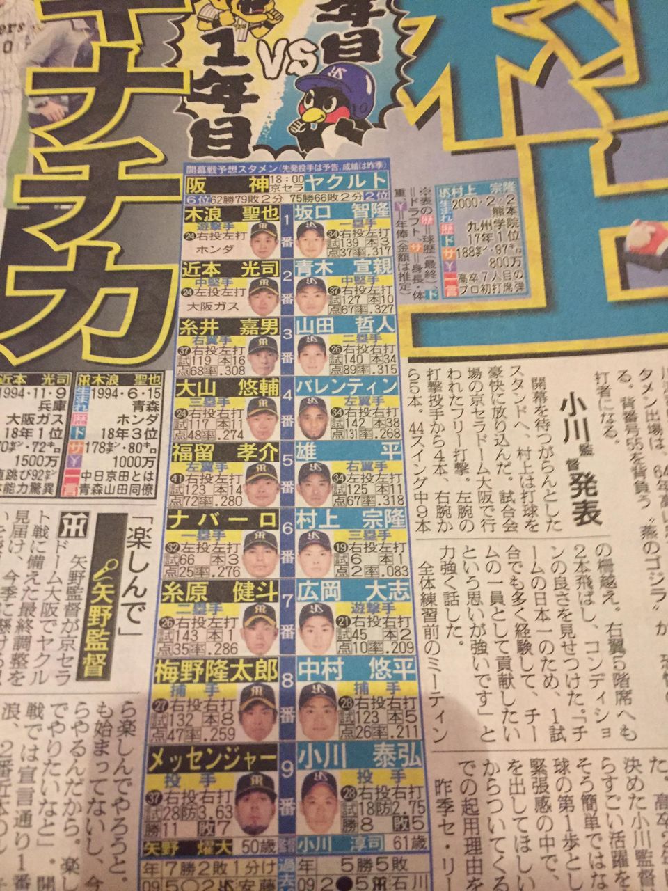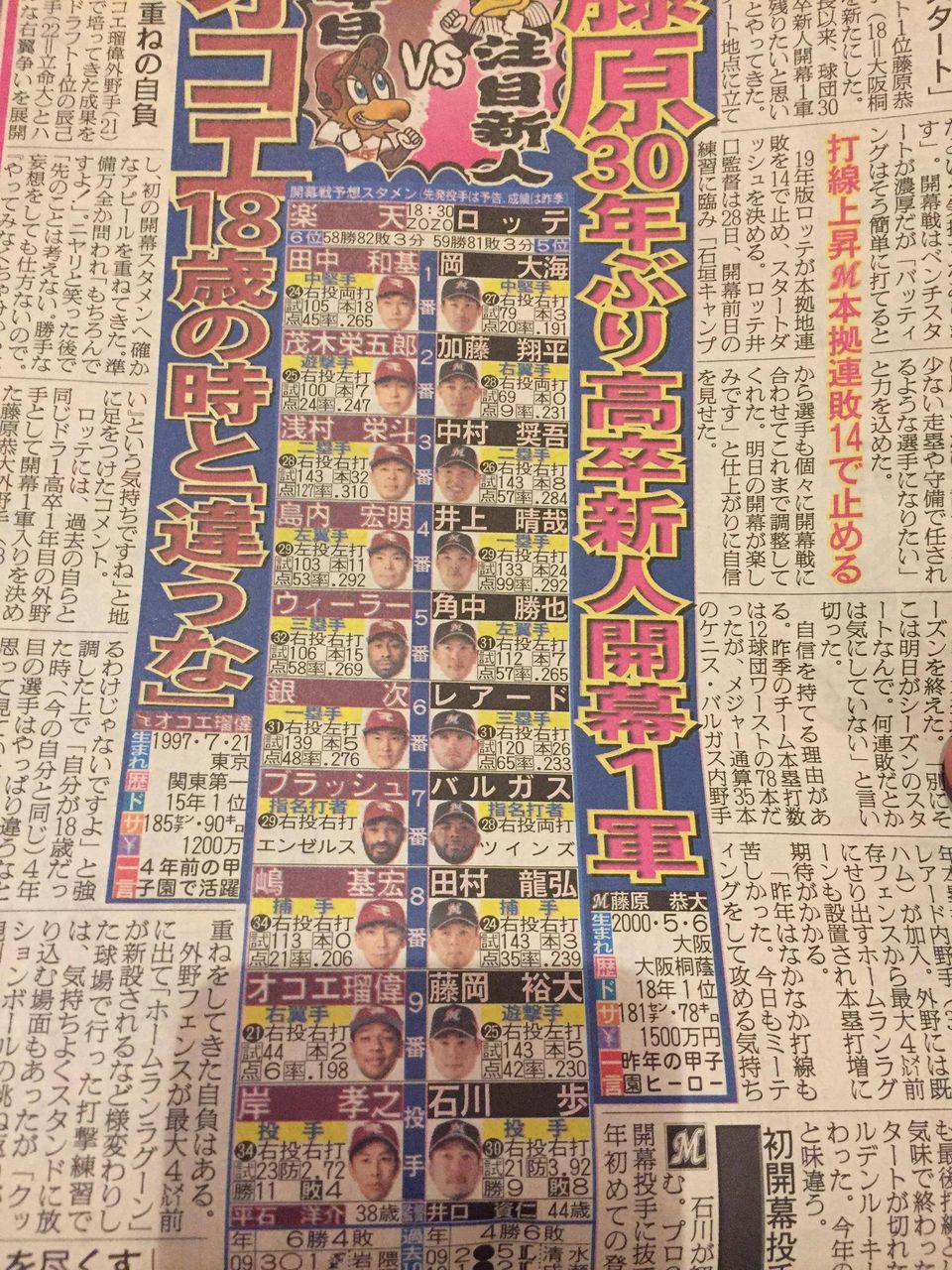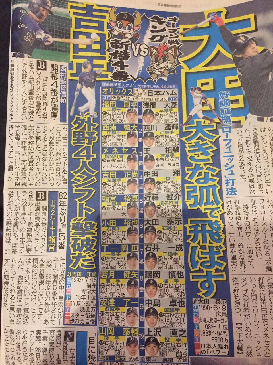 日刊の開幕戦スタメン予想キタ━━━(゚∀゚)━━━!!