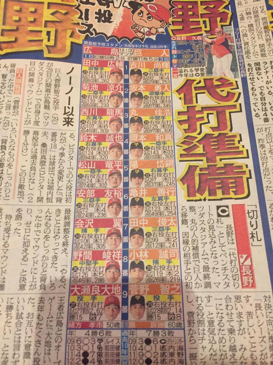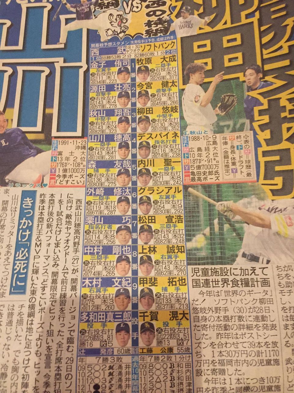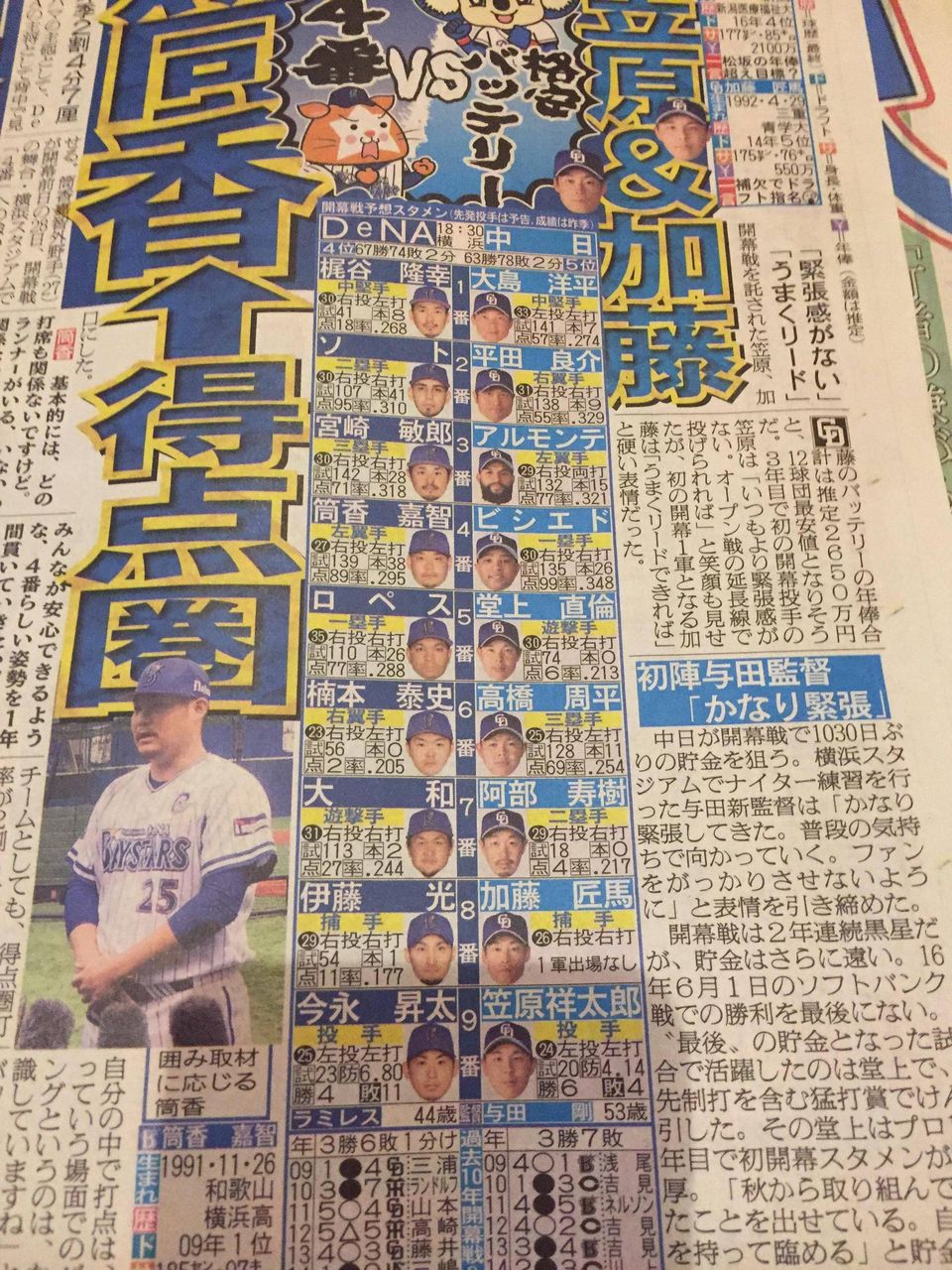 日刊の開幕戦スタメン予想キタ━━━(゚∀゚)━━━!!