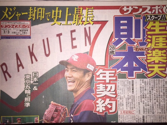 則本、生涯楽天!メジャー封印で史上最長7年契約