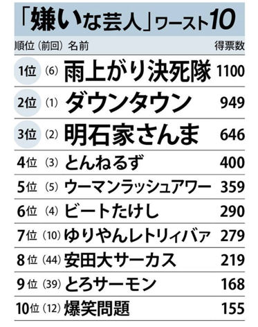 【文春】嫌いな芸人ランキングwwwwwwwww