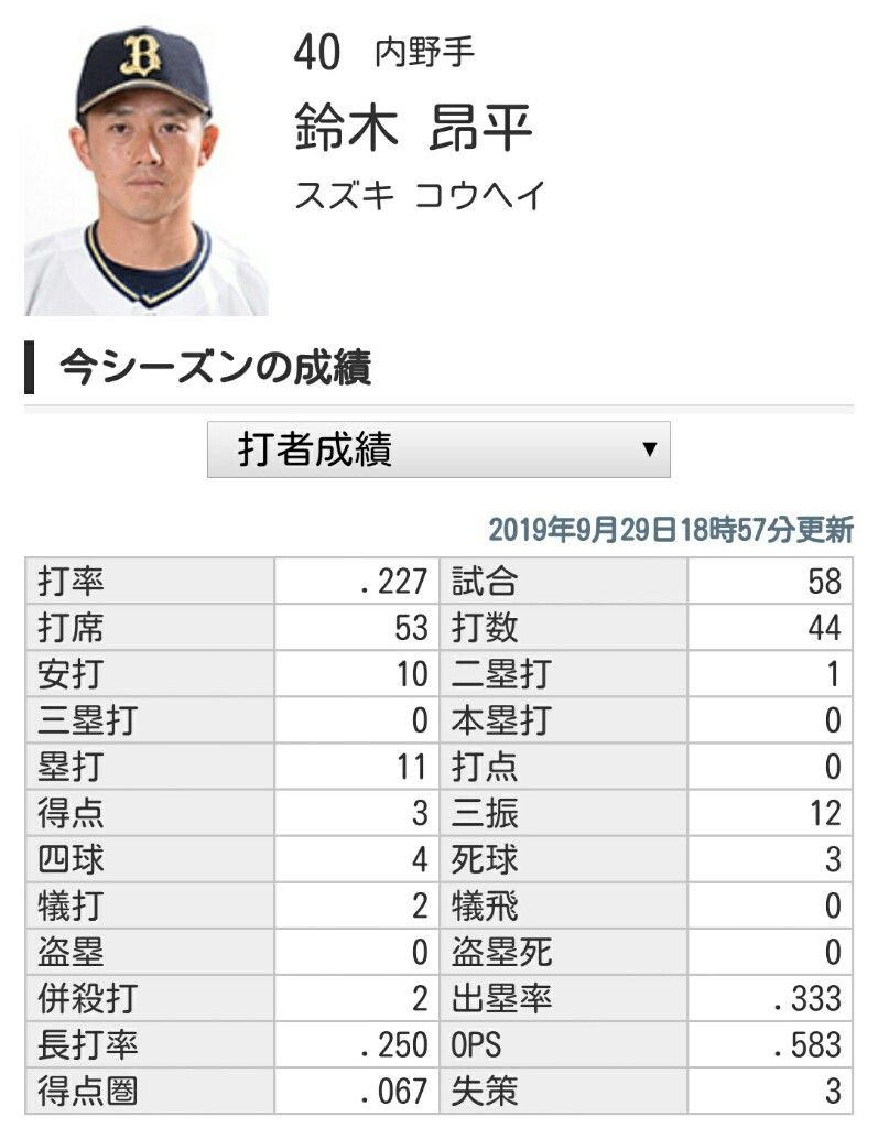 オリックス鈴木昂平4年目28歳 .227(44-10)0本0打点「今季はキャリアハイとなりました」