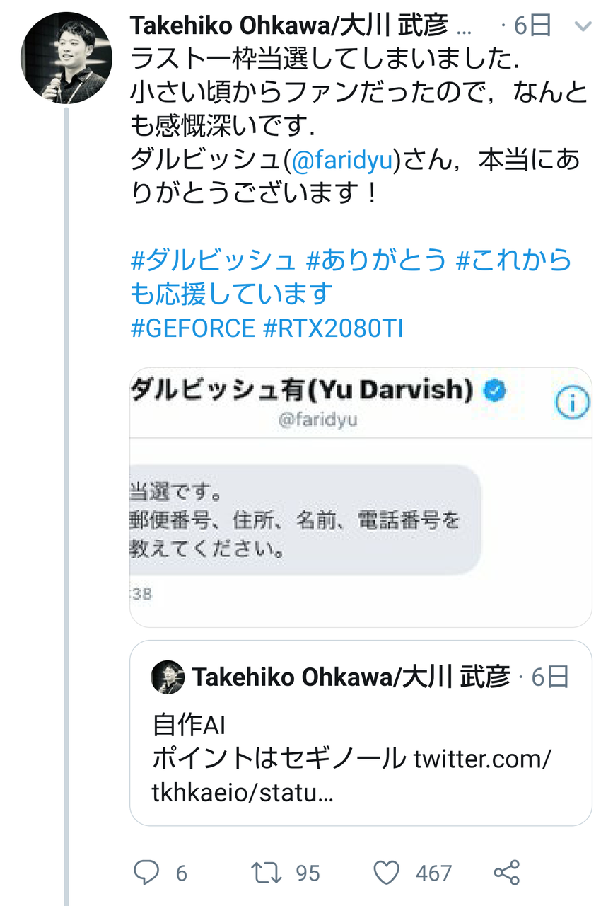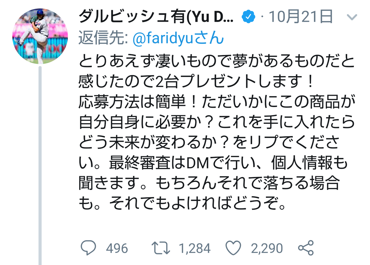 RTX2080Tiが何なのか理解したダルビッシュはこれをプレゼントすると発表