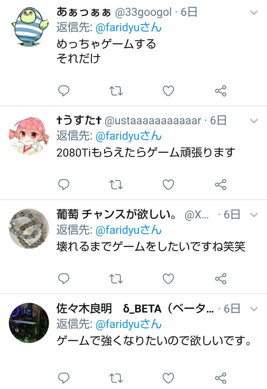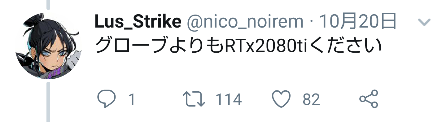 グローブよりもRTX2080Ti(20万円弱の超高性能なパソコン部品)をくれというクソリプが付く