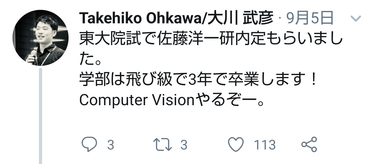 ちなみに大学を飛び級で卒業して東大院AI研究室進学が内定している有能