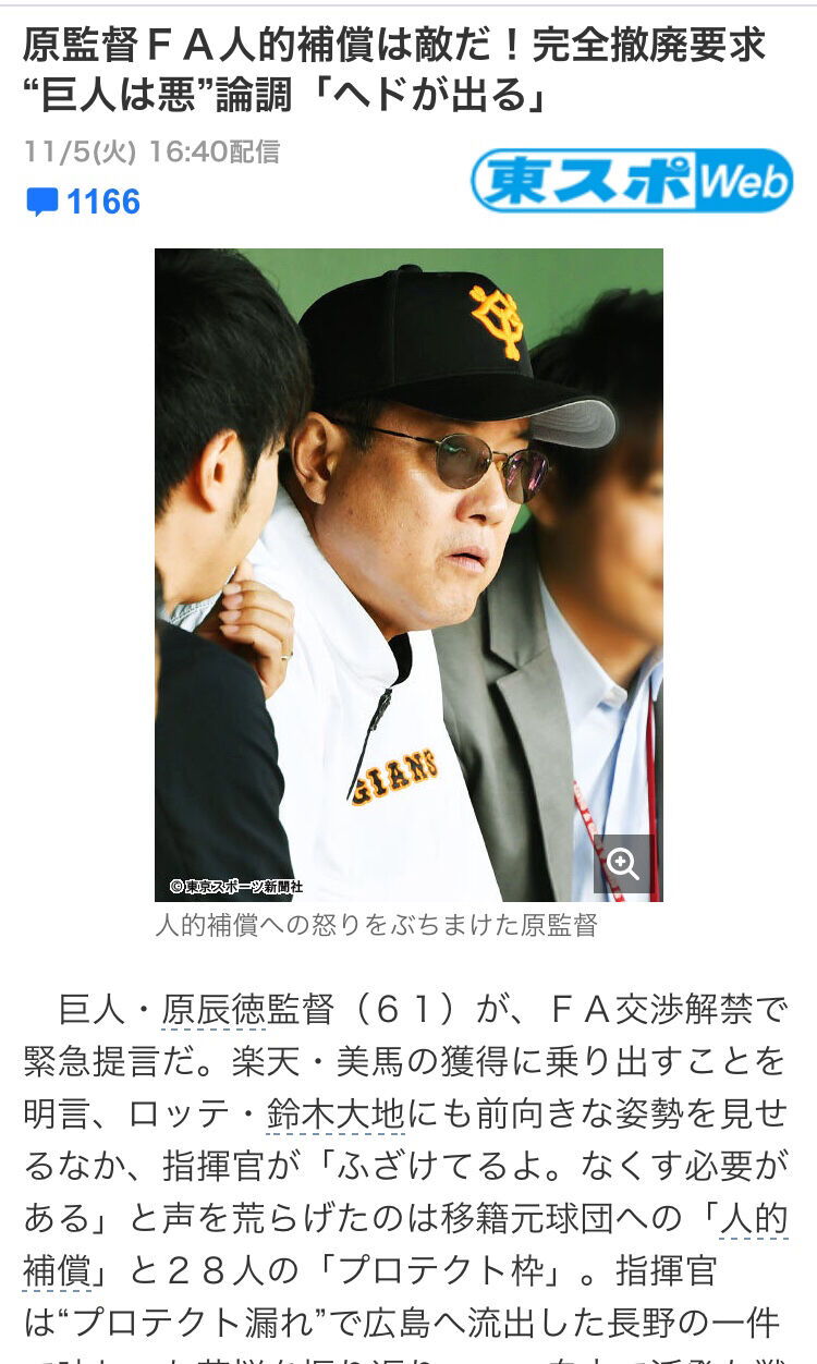 【悲報】巨人原監督「巨人が悪…ヘドが出るね」