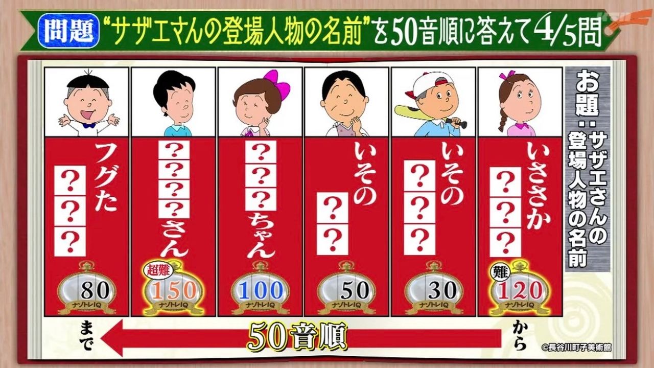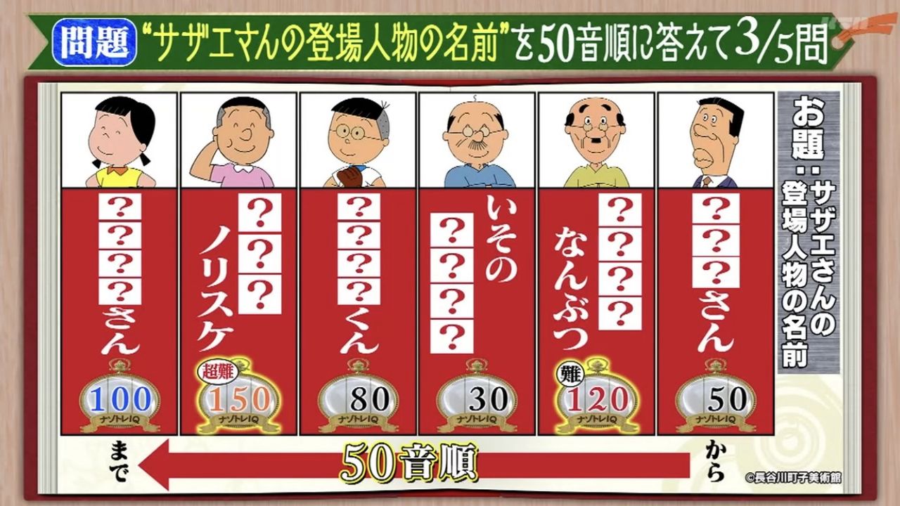 【悲報】クイズ番組のサザエさんの問題が難しすぎる