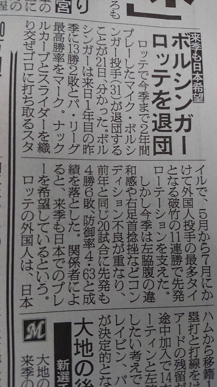 ロッテ・ボルシンガー、オリ・ロメロ退団!!!