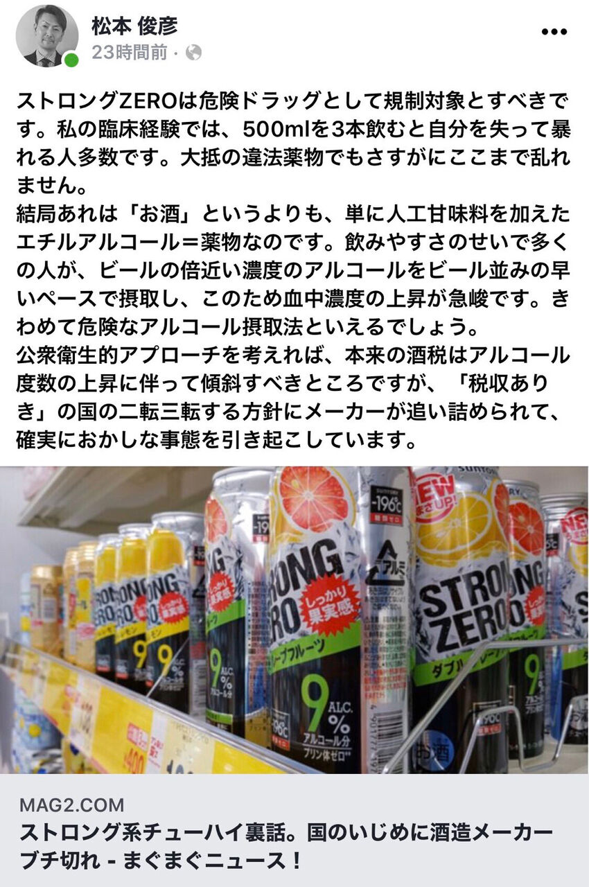 薬物依存研究部部長「ストロングZEROは危険ドラッグとして規制すべき」