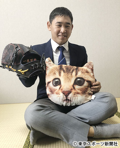 【画像】オリックスドラ1・宮城 猫のプリント枕持参で入寮「心が癒やされる」