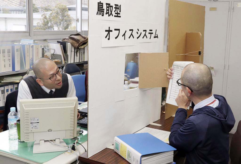 ※ 段ボール仕切り越しに業務 感染者ゼロの鳥取、県職員 – 読んで見フォト – 産経フォト
