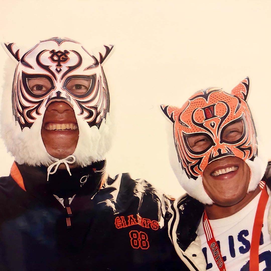 この日は「10年前、宮崎キャンプにお邪魔した時に、プロレス大好きな監督にジャイアンツ仕様のマスクをプレゼントしたら被ってくれた原監督」と説明し、虎戦士のマスクをかぶった原監督とのツーショットを公開した。